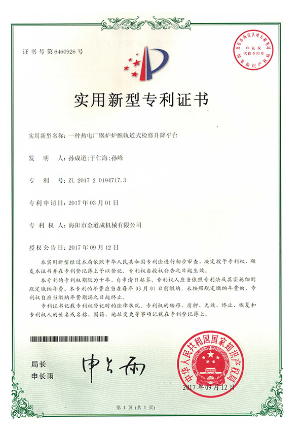 新闻中心下支撑折叠式锅炉炉膛检修平台行业首项国家专利发明者
